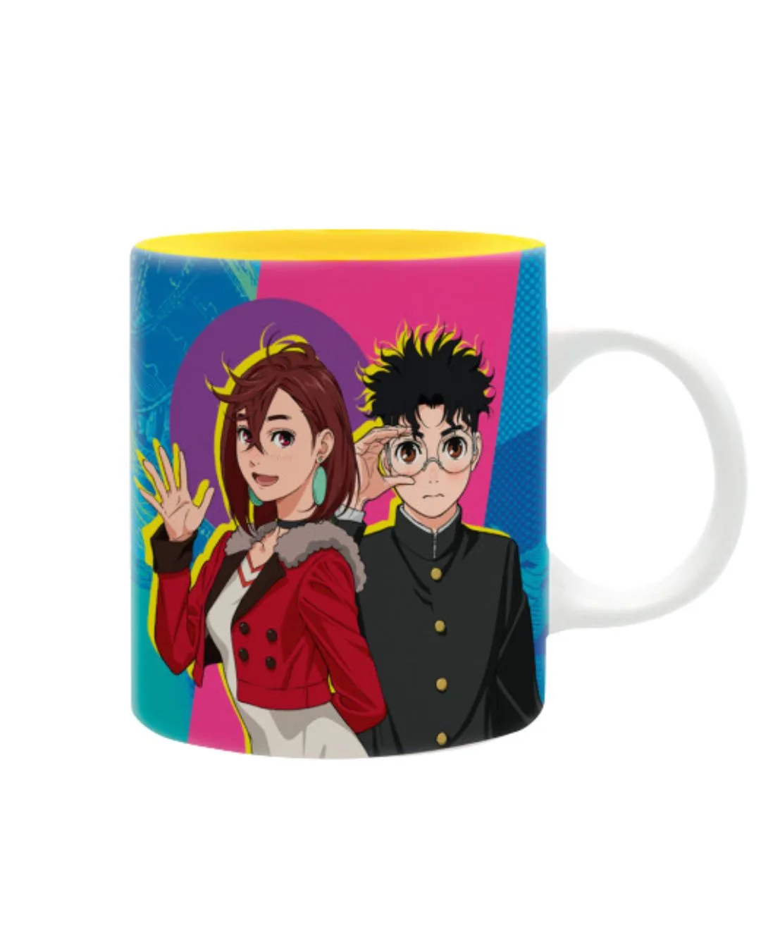 Scopri il misterioso mondo di Dan Da Dan con la tazza Momo & Okarun firmata ABYstyle. Raffigurante i due protagonisti, Momo Ayase e Ken Takakura (Okarun), questa tazza celebra la loro avventura tra fantasmi e alieni in un design accattivante e colorato.