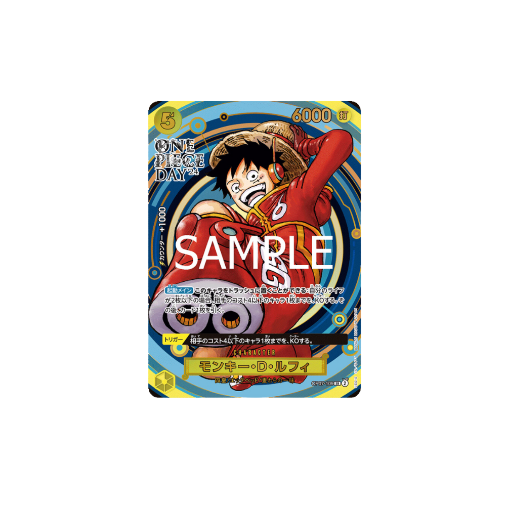 Il nuovo folder dedicato al One Piece Day è un prodotto imperdibile per i fan del gioco di carte collezionabili di One Piece! Questo esclusivo set include una carta promo di Luffy, che raffigura il capitano dei Pirati di Cappello di Paglia in una nuova e iconica illustrazione, e una carta DON promo con un design unico che celebra lo spirito dell’evento.