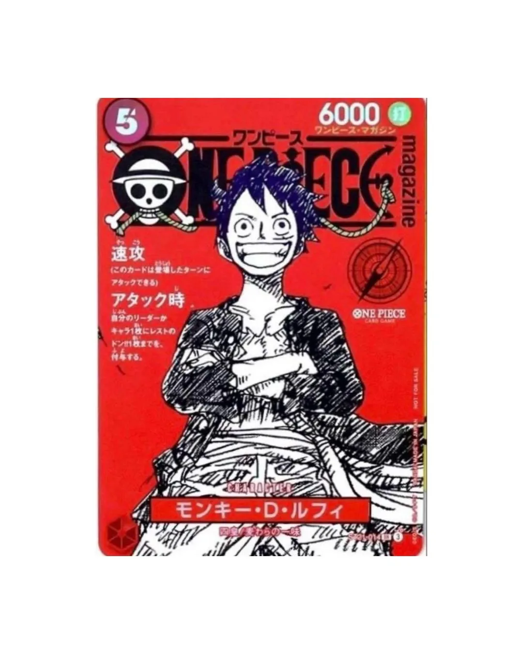 Rivista ufficiale ONE PIECE Magazine, edizione speciale dedicata al celebre manga di Eiichirō Oda. In copertina è raffigurato Monkey D. Rufy in una posa iconica, con una grafica vivace e ricca di dettagli. La rivista contiene approfondimenti esclusivi, interviste, illustrazioni speciali e sezioni dedicate ai fan, oltre a contenuti legati a Weekly Shōnen Jump. Inclusa una carta promozionale ufficiale di Monkey D. Luffy, ideale per collezionisti e appassionati del One Piece Card Game.